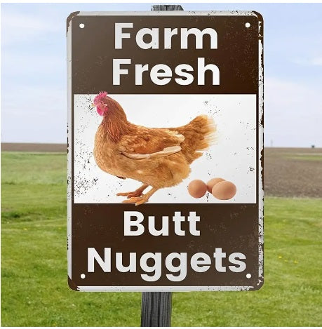 1pc Vintage Metal, Tin Sign, Farm Fresh, Butt Nuggets, Chicken, Egg Sale, Market Farm, Barn, Bathroom, Yard, Themed Gifts, Rustic Poster, Art Retro Decor, 12x8 Inches.