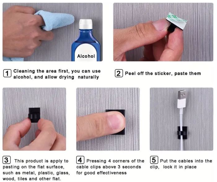 - No need for drilling or screws; simply stick the clips in place to hold small cable wires