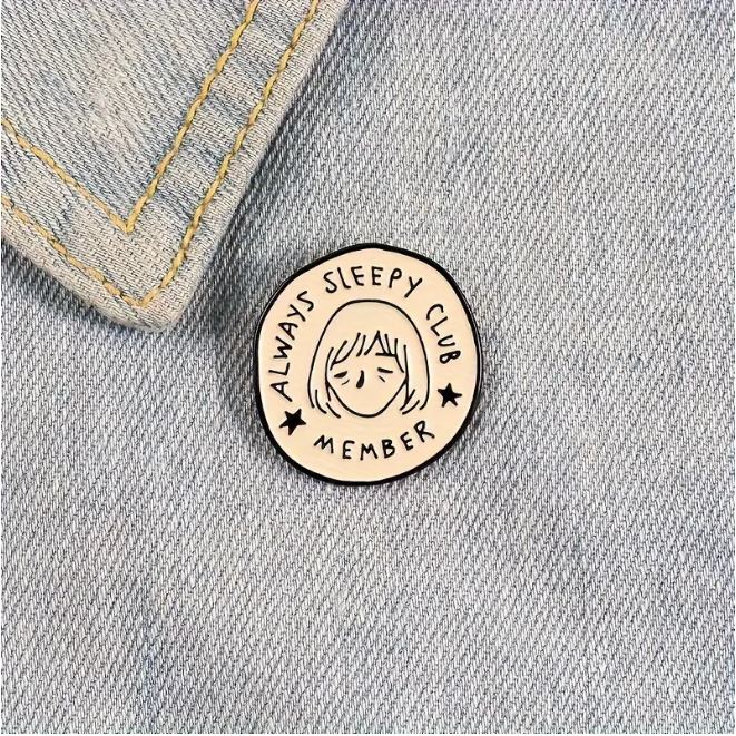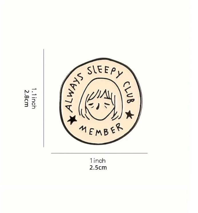 This cute Always Sleepy Club Member Pin is a delightful accessory designed in a round badge format. Perfect for adding a touch of charm to hats, backpacks, jackets, shirts, and bags, this versatile pin serves as a decorative accessory for various clothing items. Adorned with adorable cartoon patterns, it brings a playful and stylish element to your attire, making it a fun and personalized fashion statement.